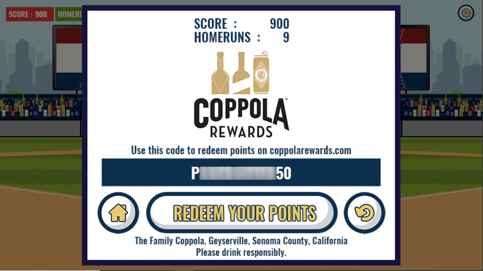 The promotional game was a baseball batting web game, which rewards players with coupon codes. These digital coupon codes can be used by customers at the store checkout process.