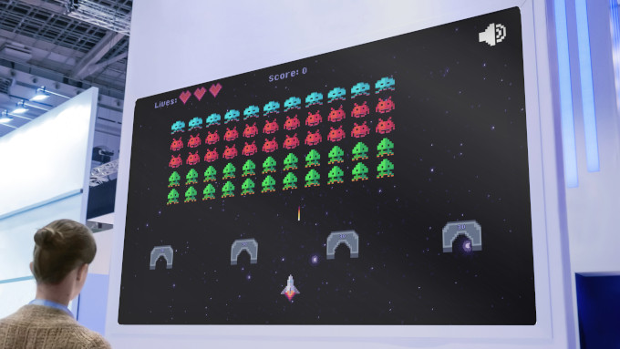 We deployed our Space Invaders game for a branded game project in North America. The player steps up to the stage, is given a wireless arcade controller and tries to defend Earth from an alien invasion.